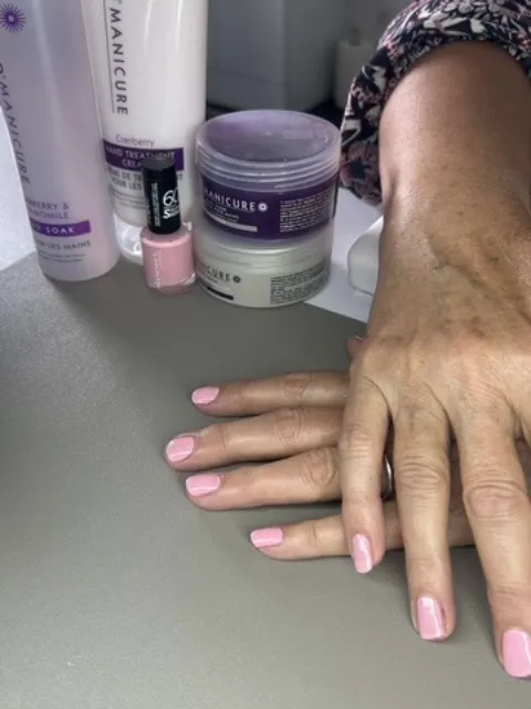 Includes hand soak, massage, moisturiser, and a gel polish finish.